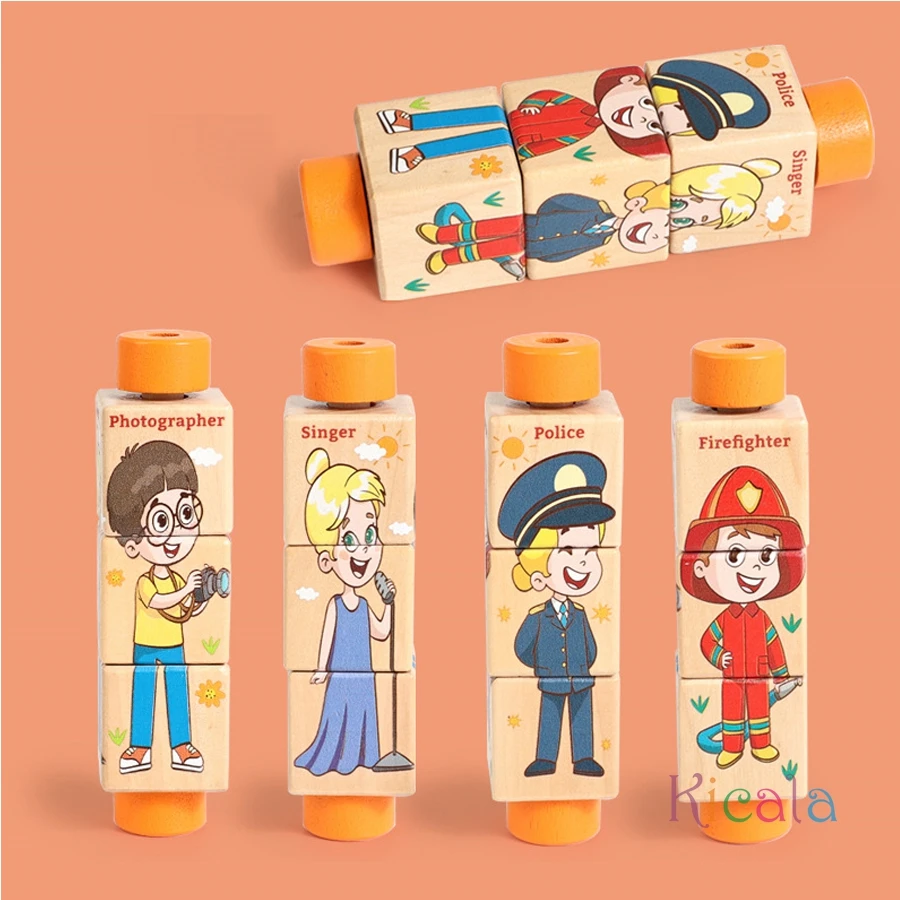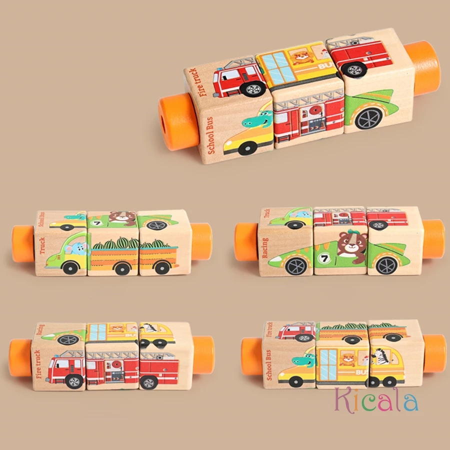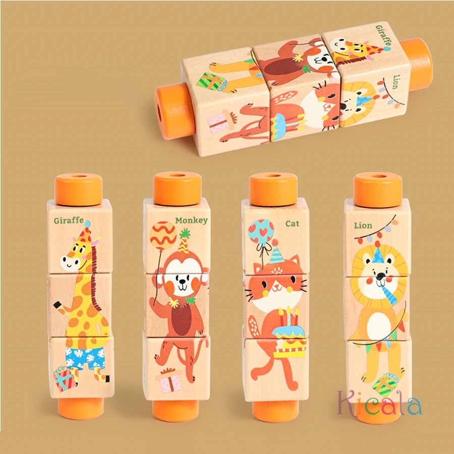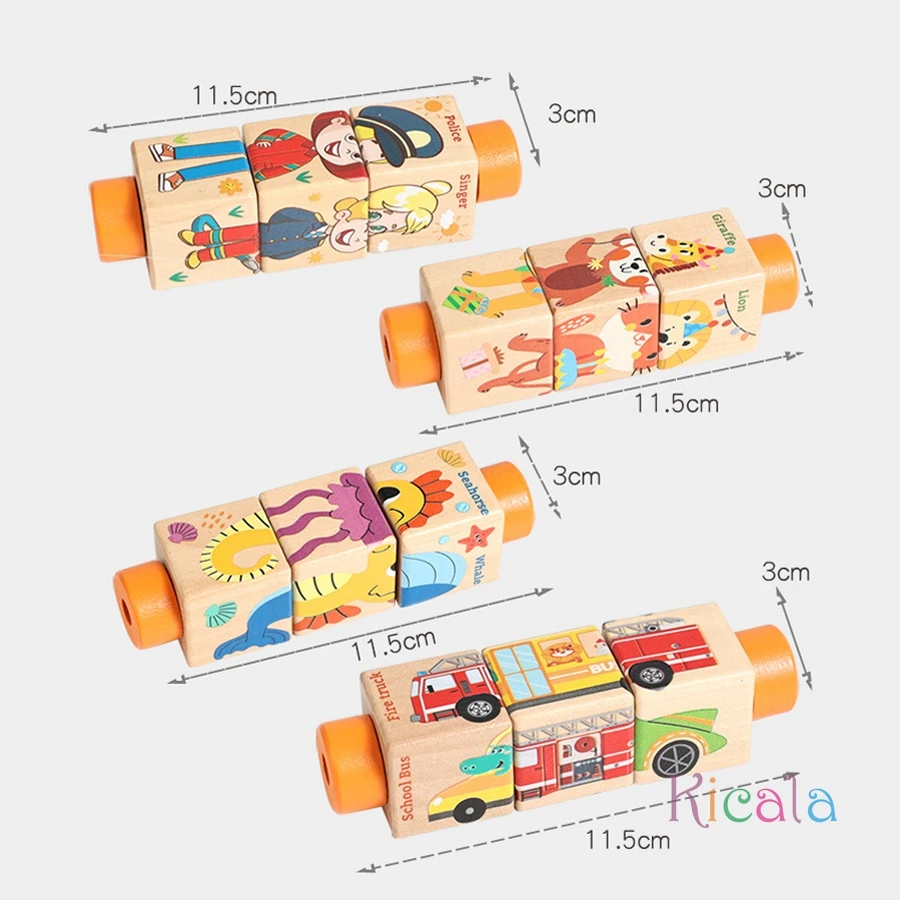 3D Wooden Jigsaw Puzzle Rotating Puzzle Building Blocks Learning Educational Montessori Toy Gifts for Kids Cognition Toys
